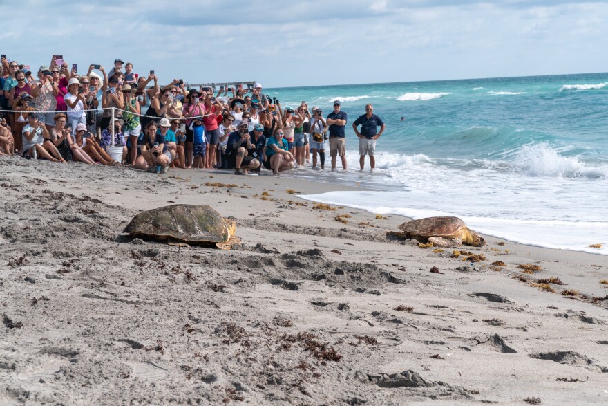 Source : www.fau.eduInjured loggerhead turtles crawl into the Atlantic after rehabbing